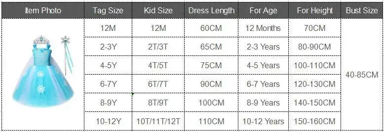 1.The dress length is from underarms to skirt bottom. It’s Ankle Length Snow Queen Esla Long Tutu Dress with Crown Stick.