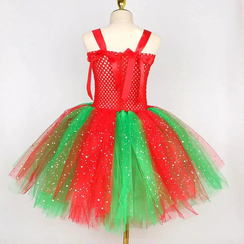- Color: Red & Green Glittery Candy Christmas Dresses for Girls