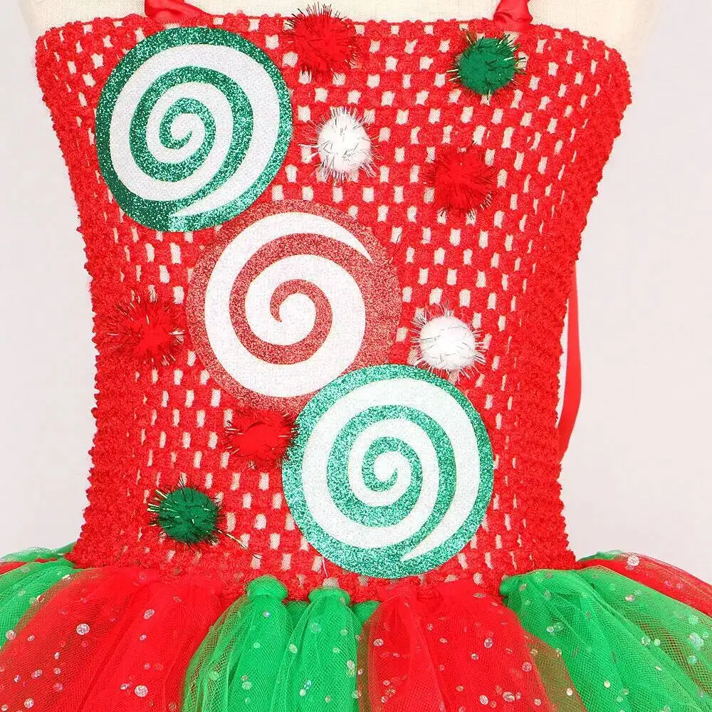 Theme: Sparkling Baby Girls Christmas Candy Dress Up Costumes for Kids Toddler 1-12 Years.