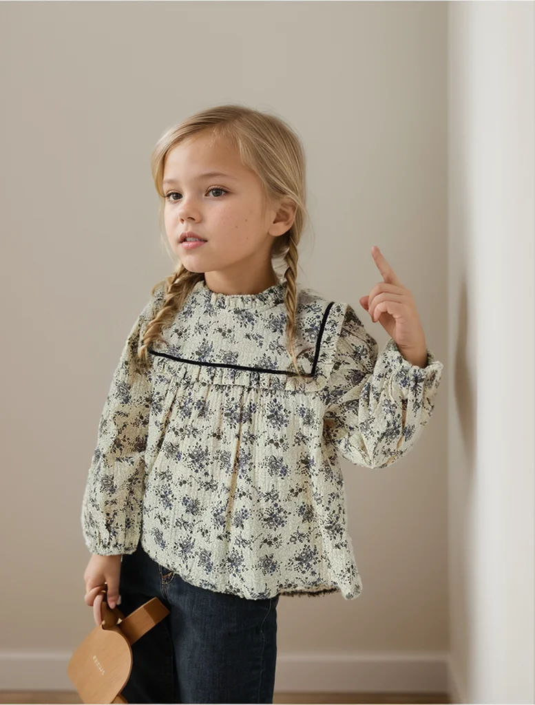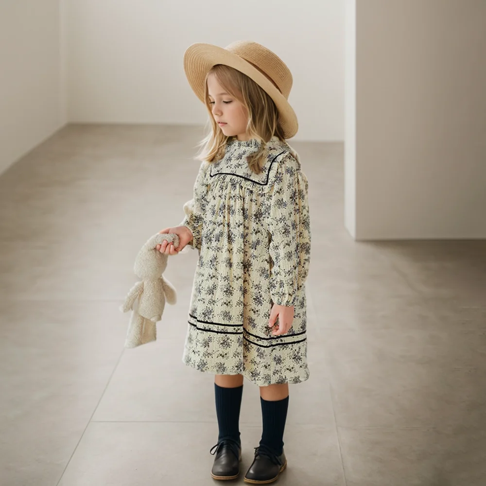 Spring Autumn Baby Girl Dresses Blue Floral Princess Girls Dress Kids Girl Birthday Party Clothes